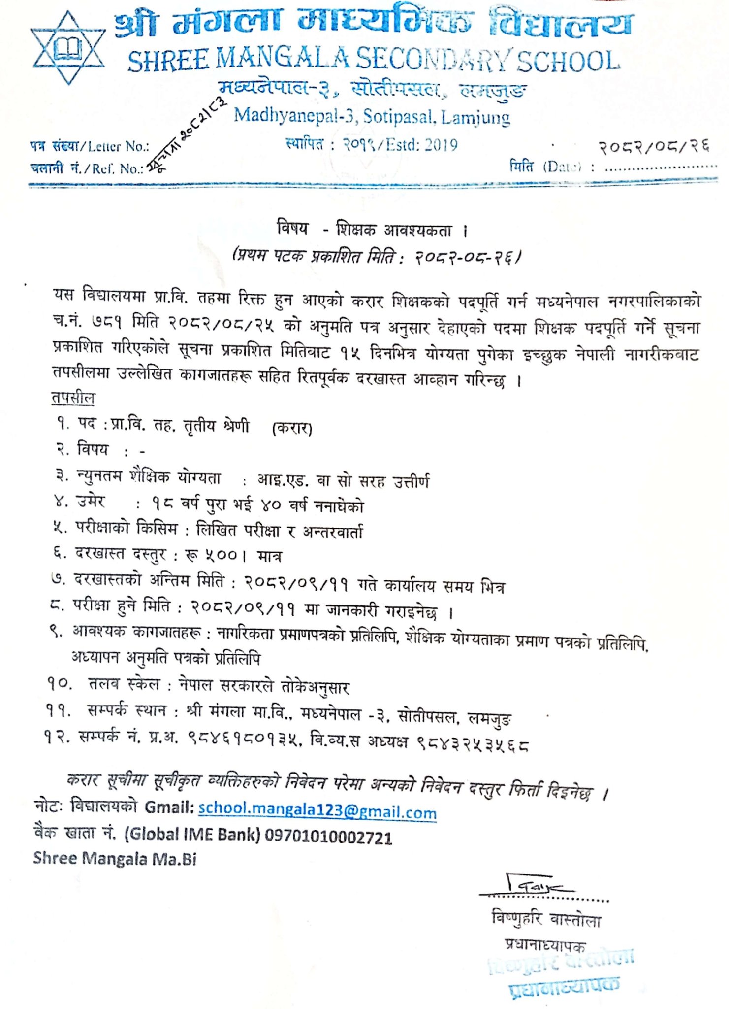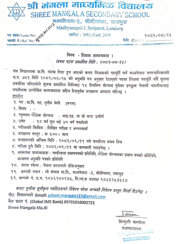 शिक्षक आवश्यकता सम्बन्धी सूचना