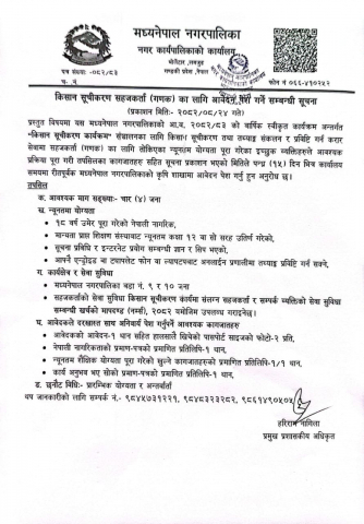 Home » किसान सूचीकरण सहजकर्ता (गणक) का लागि आवेदन पेश गर्ने सम्बन्धी सूचना