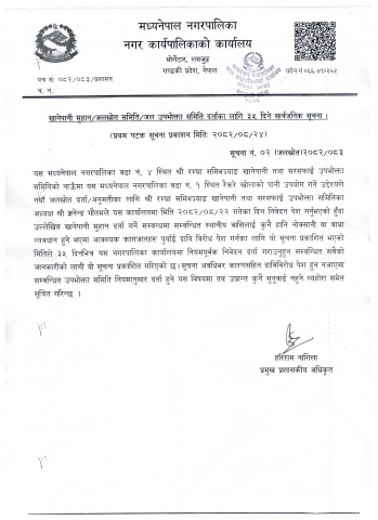 खानेपानी मुहान/जलस्रोत समिति/जल उपभोक्ता समिति दर्ताका लागि ३५ दिने सार्वजनिक सूचना