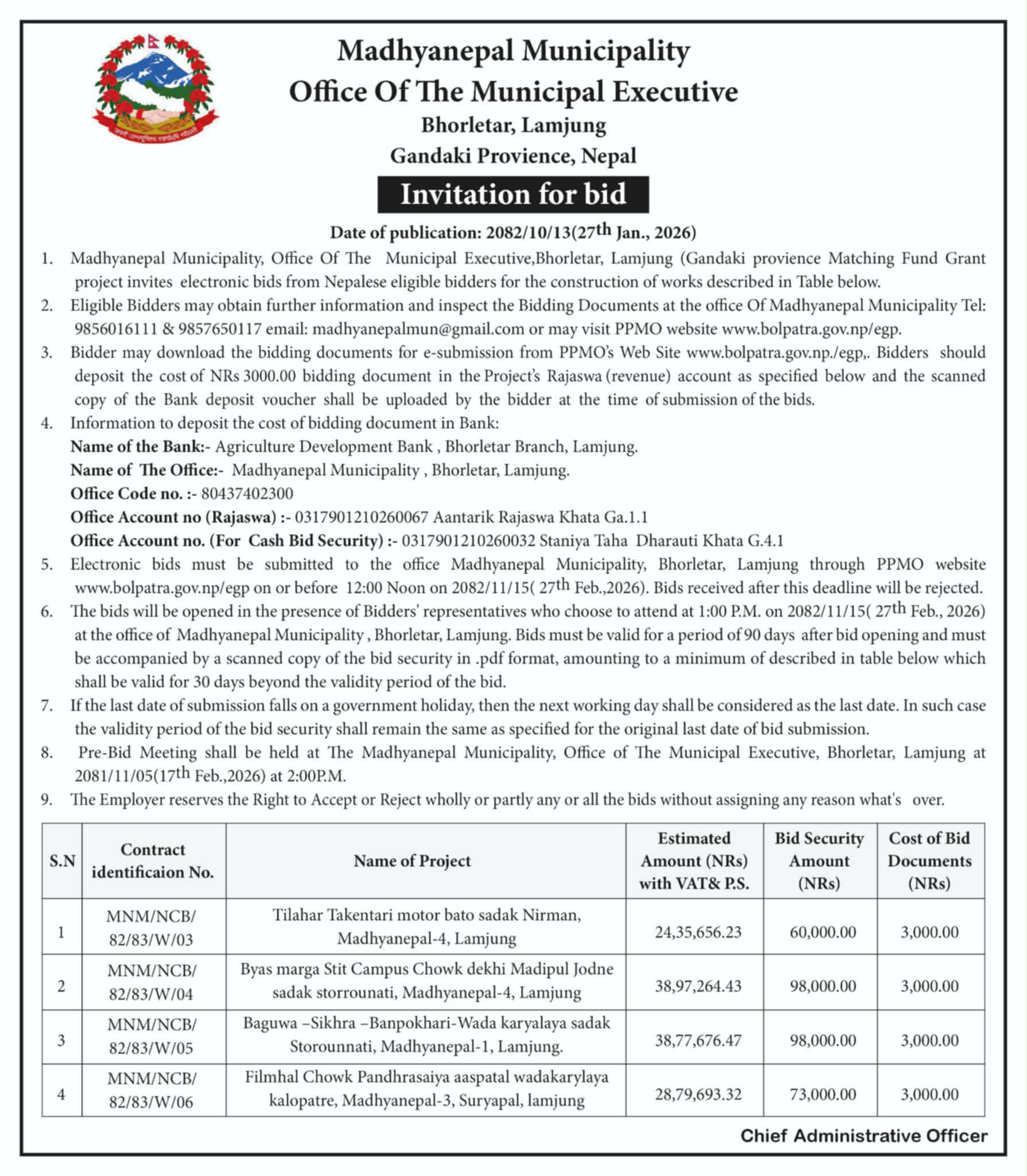 बोलपत्र आह्वानको सूचना
