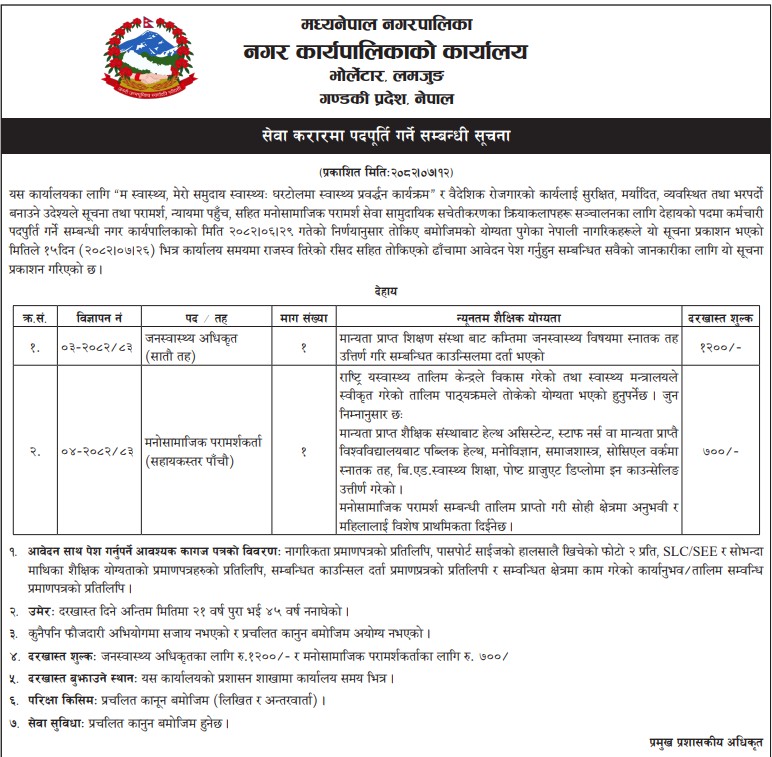 सेवा करारमा पदपूर्ति गर्ने सम्बन्धी सूचना