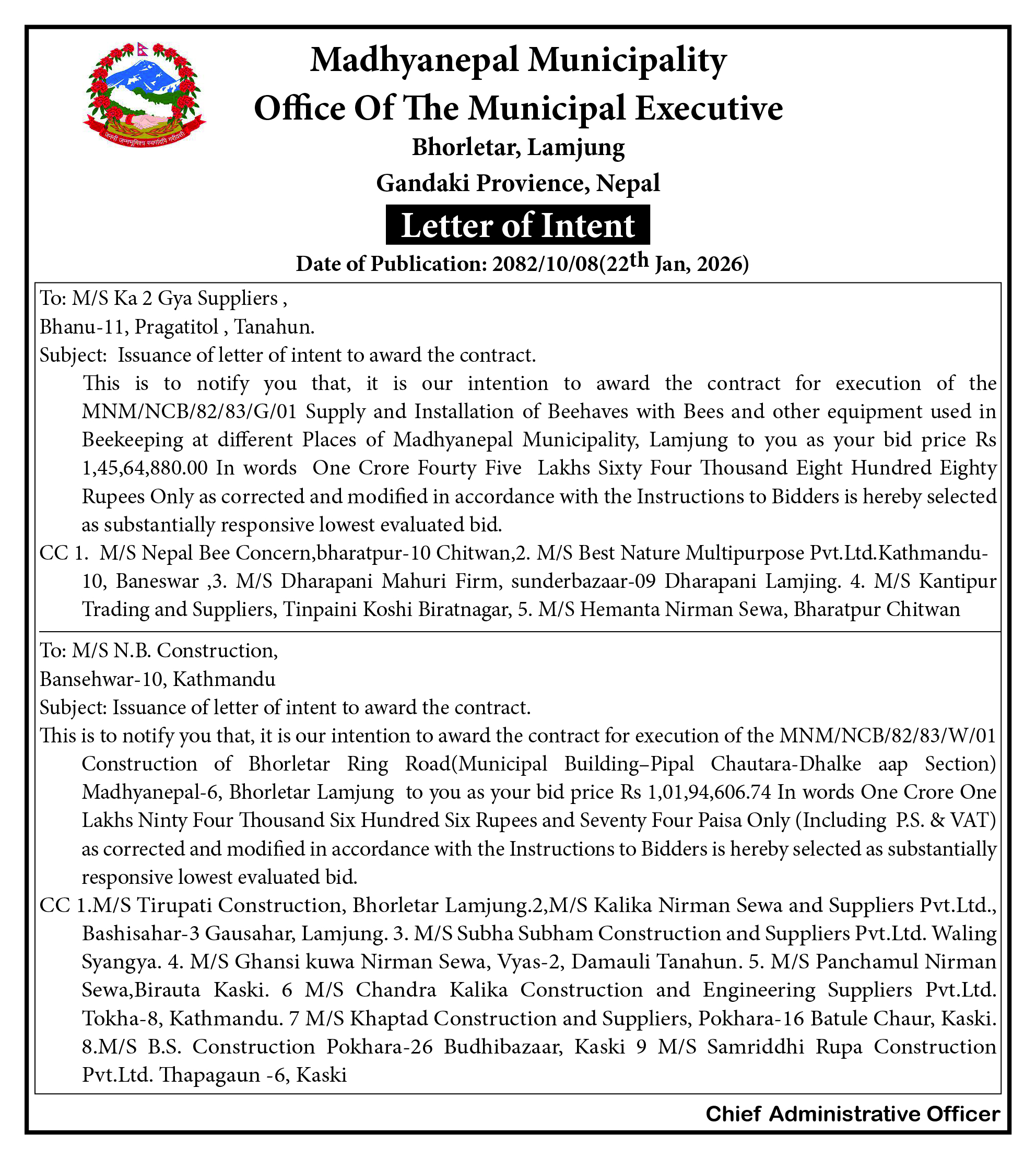 आशयको सूचना प्रकाशन सम्बन्धमा