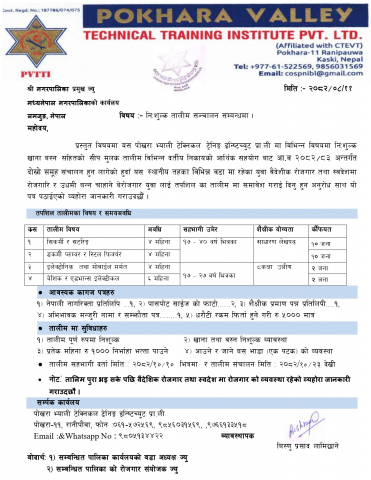 Home » निःशुल्क तालिम सञ्चालन सम्बन्धमा